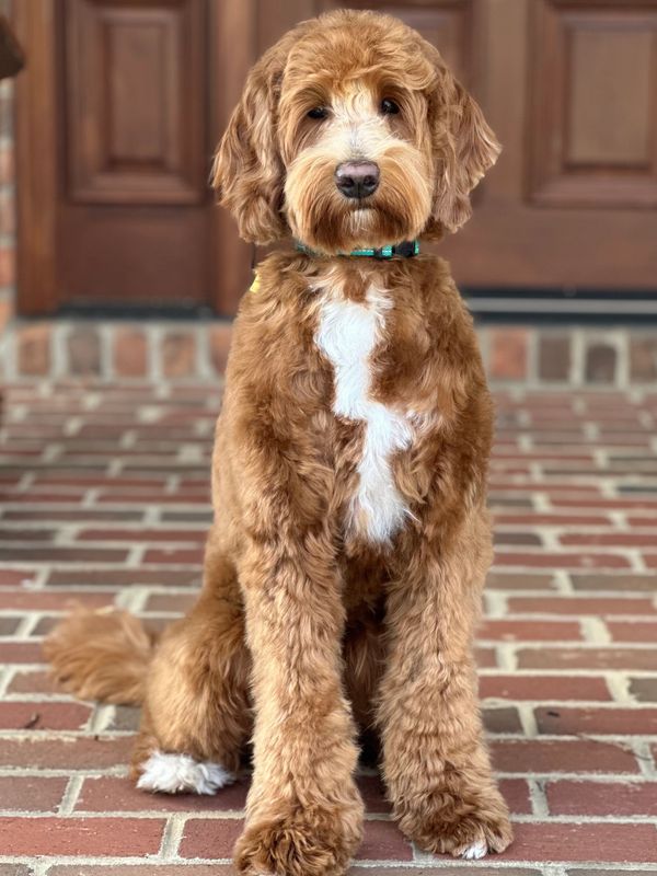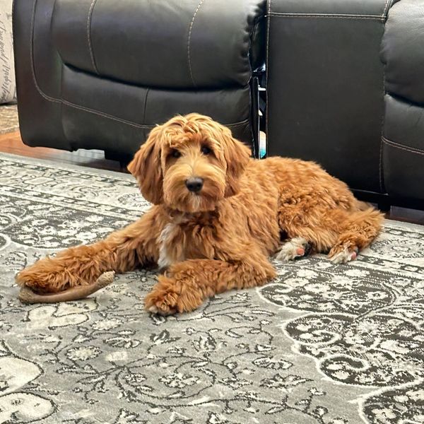 He is thriving in his training and continues to impress us with his quick learning and sweet temperament. Milo is expected to weigh around 28 pounds once fully grown and has a stunning, fully red wavy coat that makes him stand out wherever he goes.