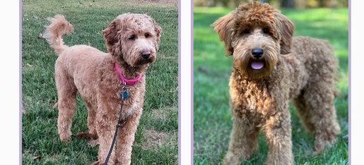 Goldendoodles can inherit a range of coat types—from tight Poodle‑like curls to soft waves or straighter coats influenced by their Golden Retriever parent. Regardless of texture, all Goldendoodles have a double coat with a dense undercoat and longer guard hairs. Regular brushing and professional grooming every 6–8 weeks help keep their coats healthy and mat‑free.